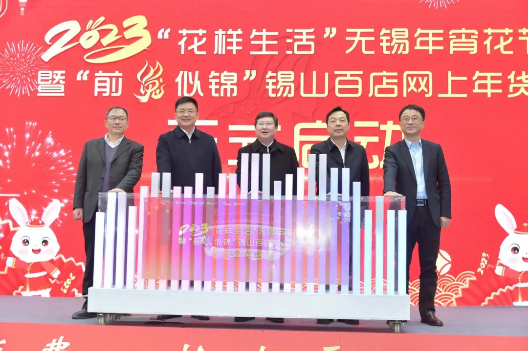 1月14日上午,2023“花样生活”无锡年宵花节暨“前兔似锦”锡山百店网上年货节在锡山台创园启幕,来自锡山台创园花卉企业带来的蕙兰、蝴蝶兰、红掌、杜鹃花等美丽鲜花,甘露青鱼、荡口年糕以及翠竹苑饭店、海景一号等百余家商户出品的特色农产品和年夜饭礼盒打响“锡引力 闪购潮”锡山城市消费品牌。